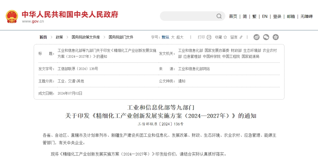 2024年7月,工業(yè)和信息化部、國家發(fā)展改革委、財政部、生態(tài)環(huán)境部、農(nóng)業(yè)農(nóng)村部、應急管理部、中國科學院、中國工程院、國家能源局等9部門聯(lián)合發(fā)布《精細化工產(chǎn)業(yè)創(chuàng)新發(fā)展實施方案(2024—2027年)》(以下簡稱《實施方案》)?!秾嵤┓桨浮?/span>中明確在生物化工行業(yè)、農(nóng)藥染料、安全化技術等諸多方面大力倡導、實施推廣“微通道反應器及管式反應器工藝技術”,助力精細化工產(chǎn)業(yè)高端化、綠色化、智能化發(fā)展。