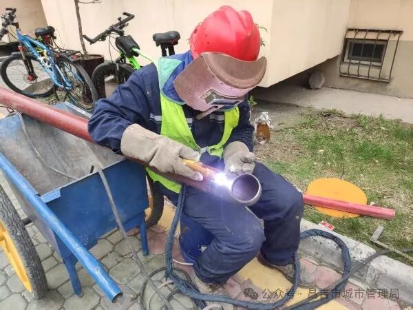 4月17日,在位于昌吉市延安南路的石油小區(qū)院內一派繁忙景象,這里正在施工的是昌吉市燃氣管道老化更新改造項目。有的工人對管道接頭進行焊接、有工人對鋼管進行切割、有工人在安裝三角形的燃氣管道支撐架。