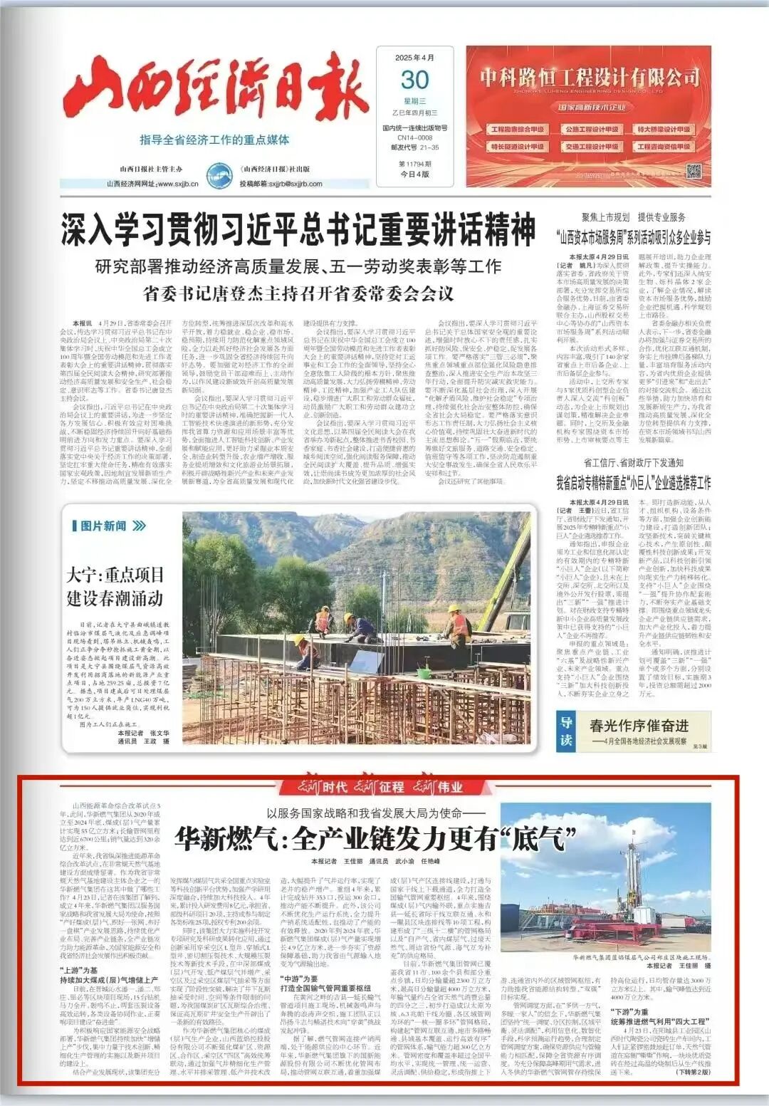 近年來,山西縱深推進能源革命綜合改革試點,在非常規(guī)天然氣基地建設(shè)方面成績顯著。作為山西省非常規(guī)天然氣基地建設(shè)主體企業(yè)之一,華新燃?xì)饧瘓F成立四年以來,以服務(wù)國家戰(zhàn)略和山西省發(fā)展大局為使命,按照“產(chǎn)好煤成(層)氣、織好一張網(wǎng)、布好一盤棋”產(chǎn)業(yè)發(fā)展思路,持續(xù)優(yōu)化產(chǎn)業(yè)布局、完善產(chǎn)業(yè)鏈條,全產(chǎn)業(yè)鏈發(fā)力助力能源革命。
