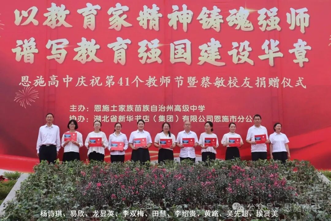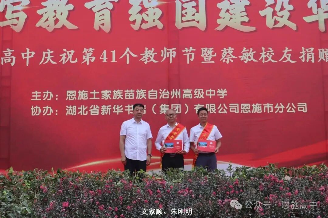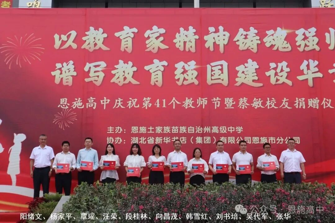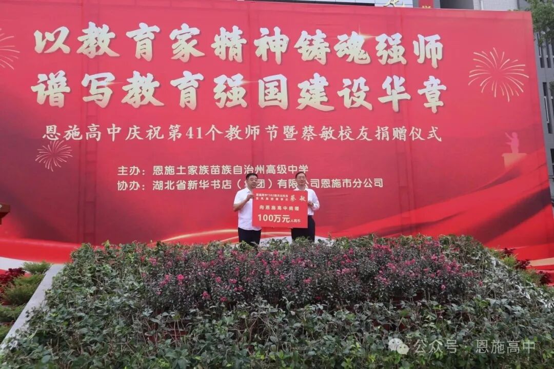 活動(dòng)伊始,蔡敏向恩施高中捐贈(zèng)人民幣100萬(wàn)元,用于支持學(xué)校助學(xué)、獎(jiǎng)學(xué)、獎(jiǎng)教工作。蔡敏在致辭中深情回顧41年前的求學(xué)經(jīng)歷,真誠(chéng)感謝母校的培育之恩,高度肯定恩高躋身名校、恩施融入世界的發(fā)展變化,并分享了“要有堅(jiān)定的信仰、要樹(shù)立遠(yuǎn)大的志向、要堅(jiān)持不懈地努力、要有強(qiáng)健的體魄”等創(chuàng)業(yè)感悟。恩施高中黨委書(shū)記、校長(zhǎng)譚斌代表學(xué)校致答謝詞。