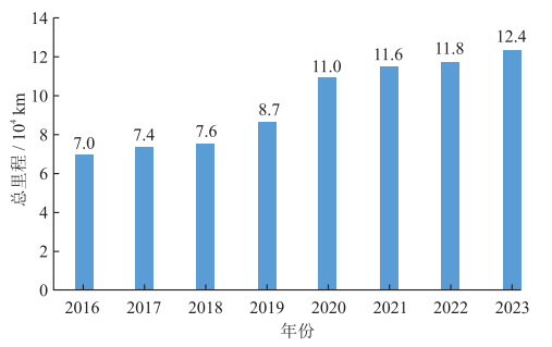 圖1 中國2016—2023年天然氣長輸管道總里程圖