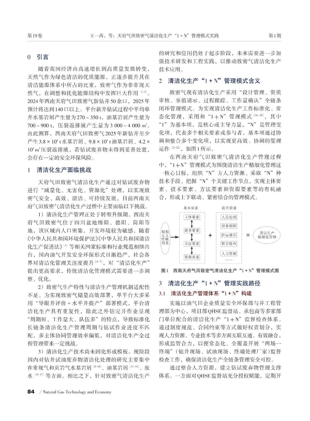 隨著西南天府氣田致密氣區(qū)塊上產(chǎn)節(jié)奏加快,平臺(tái)鉆試廢棄物產(chǎn)生量較往年成倍增長(zhǎng),這對(duì)平臺(tái)清潔化生產(chǎn)管理提出更高要求?;谖髂咸旄畾馓镏旅軞馇鍧嵒a(chǎn)管理現(xiàn)狀,從人員素質(zhì)、專(zhuān)業(yè)技術(shù)、資源整合三個(gè)維度,總結(jié)提出致密氣清潔化生產(chǎn)“1+N”管理模式,有助于提升致密氣清潔化生產(chǎn)管理精度。研究結(jié)果表明:①實(shí)施以質(zhì)量安全環(huán)保部與井工程管理部為中心,QHSE監(jiān)督站、承包商等多家單位配合的清潔化生產(chǎn)“1+N”監(jiān)督檢查體系,可確保清潔化生產(chǎn)全鏈條管理安全可控;② 通過(guò)清潔生產(chǎn)技術(shù)“1+N”應(yīng)用,實(shí)現(xiàn)廢棄物源頭減量,過(guò)程循環(huán)利用和終端無(wú)害處理,打造西南天府氣田致密氣清潔化生產(chǎn)“三廢”治理體系;③ 采取“1+N”過(guò)程管理模式,通過(guò)優(yōu)化拉運(yùn)請(qǐng)示、建立終端廠家?guī)臁⒆龊?ldquo;兩場(chǎng)一終端”監(jiān)督檢查等方式,可實(shí)現(xiàn)致密氣清潔化生產(chǎn)全鏈條高質(zhì)效管理。