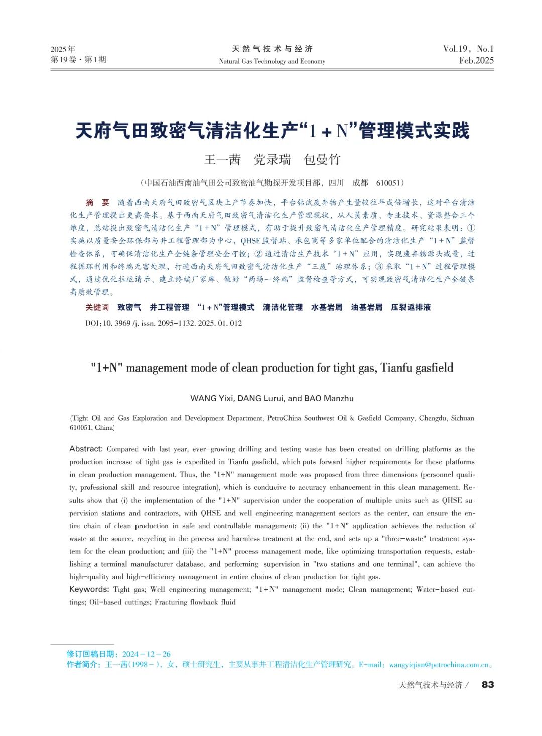 關(guān)鍵詞 致密氣 井工程管理 “1+N”管理模式 清潔化管理 水基巖屑 油基巖屑 壓裂返排液