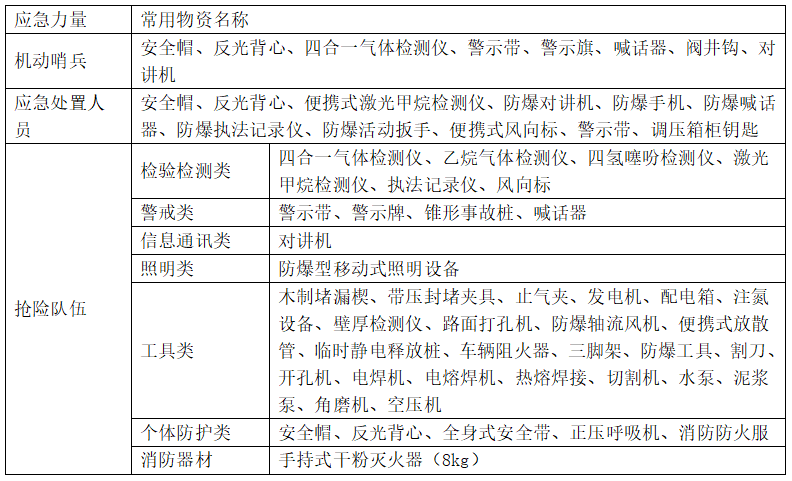 加強政府及燃氣企業(yè)的應急物資儲備,在合理布局的基礎上,建立功能完備、物資充沛的綜合應急物資儲備庫。完善社會儲備,發(fā)揮市場作用,加強資金政策扶持和標準引導,確保生產(chǎn)企業(yè)對重點物資持續(xù)供應。