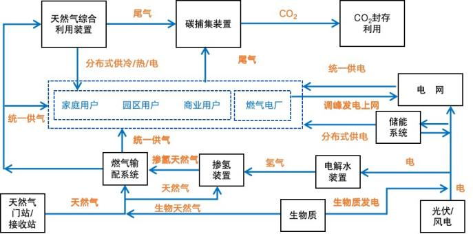 圖2基于城鎮(zhèn)燃?xì)獾?ldquo;近零碳”能源生態(tài)系統(tǒng)